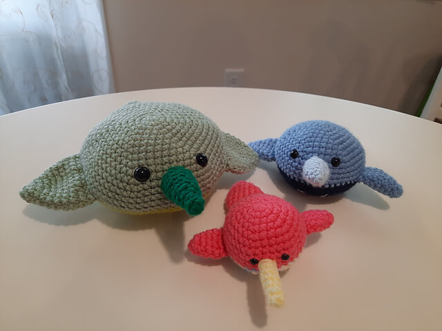 As I was trying to come up with a name for my Narwhal family, I asked some designer friends and also asked my girls. I came up with the family name of Grace the Narwhal Family. I have been wanting to name a pattern after a child that I miscarried years ago. We named her Grace, so this pattern I decided to include her with this pattern. My kids and another designer friend Trista’s kids helped name each narwhal.